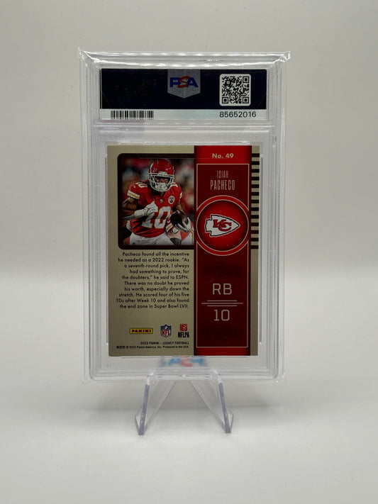 2023 Panini Legacy - Yellow #49 Isiah Pacheco /150 PSA Mint 9