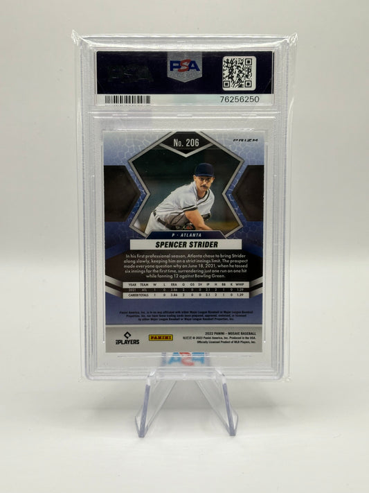 2022 Panini Mosaic - Rookies Blue Camo Mosaic Prizm #206 Spencer Strider (RC)